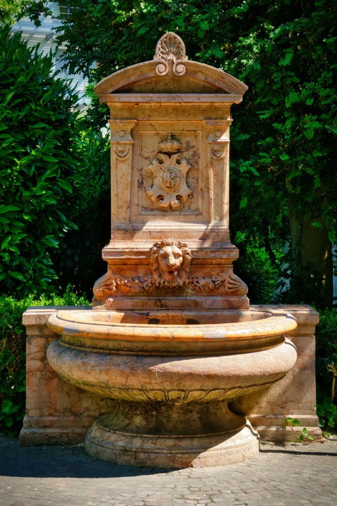 A rustic stone relief fountain adds natural texture to your wall. Carved designs can look aged and weathered, giving your space some authentic charm.