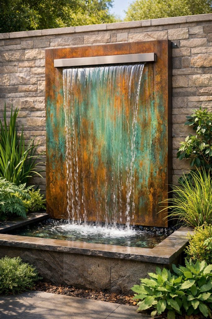7. Copper Patina Waterfall Wall