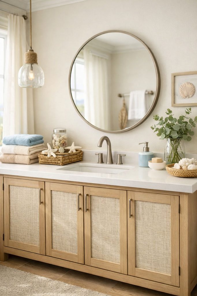 A beach-themed bathroom can make your daily routine feel like a peaceful escape. Coastal colors, textures, and little touches bring in a calm vibe that feels fresh and inviting.