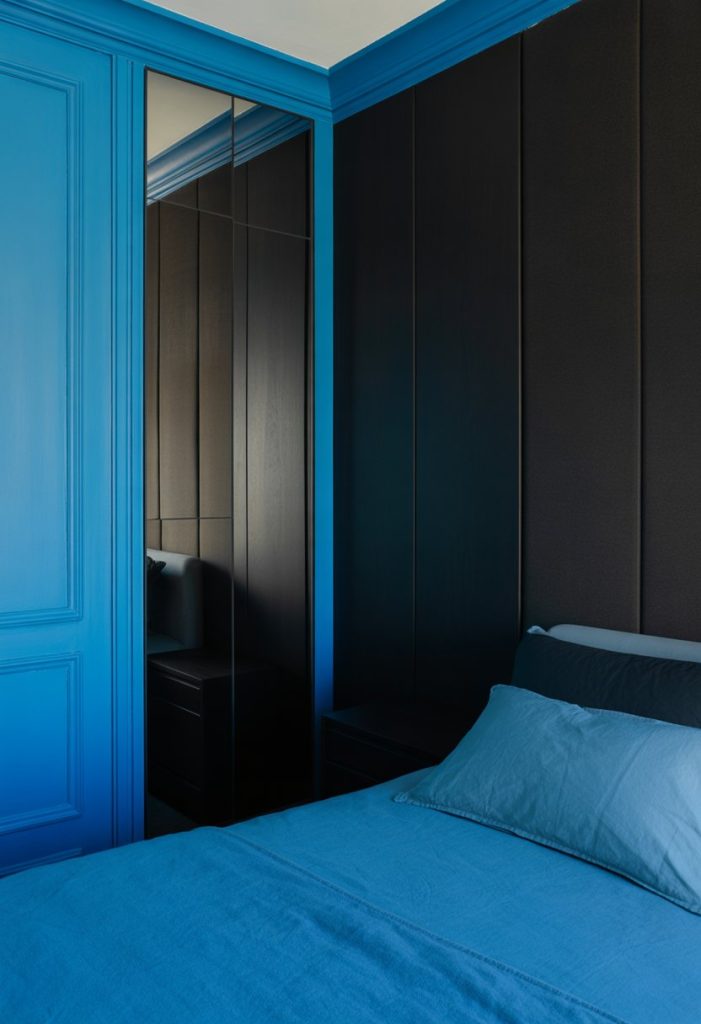 Looking to update your bedroom with a fresh color scheme? Black and blue might be exactly what you need.