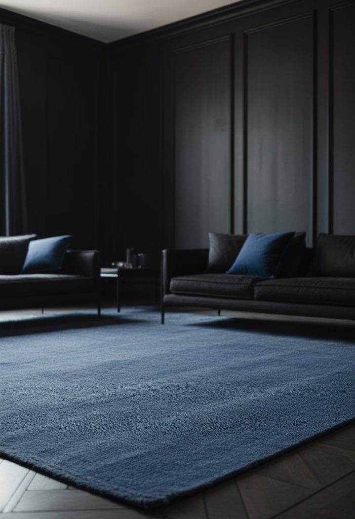 4. Navy Blue Area Rugs to Anchor Black-Painted Rooms