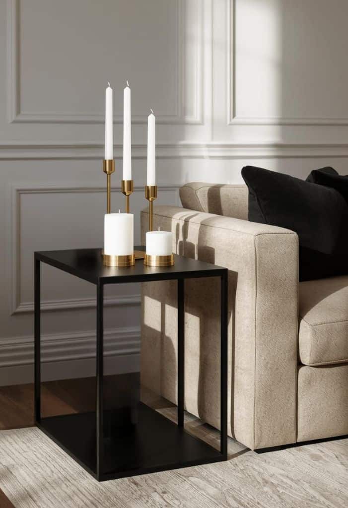 Want to add a little elegance? Put gold candle holders on a black side table for an instant style upgrade.