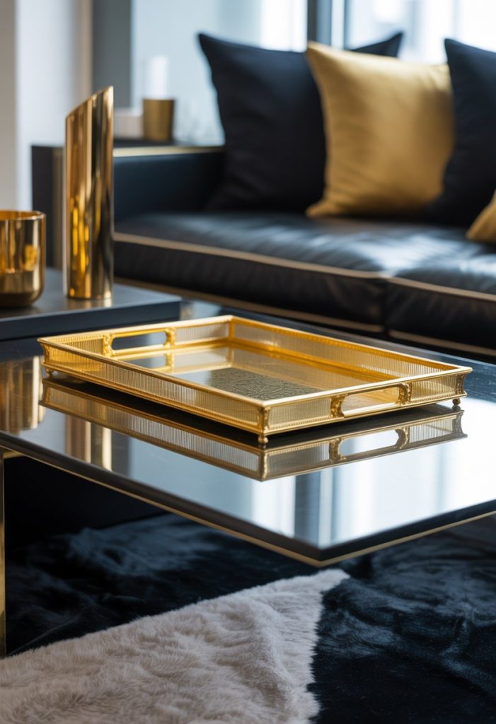 A gold tray on your coffee table brings instant elegance. These trays are stylish and super practical.