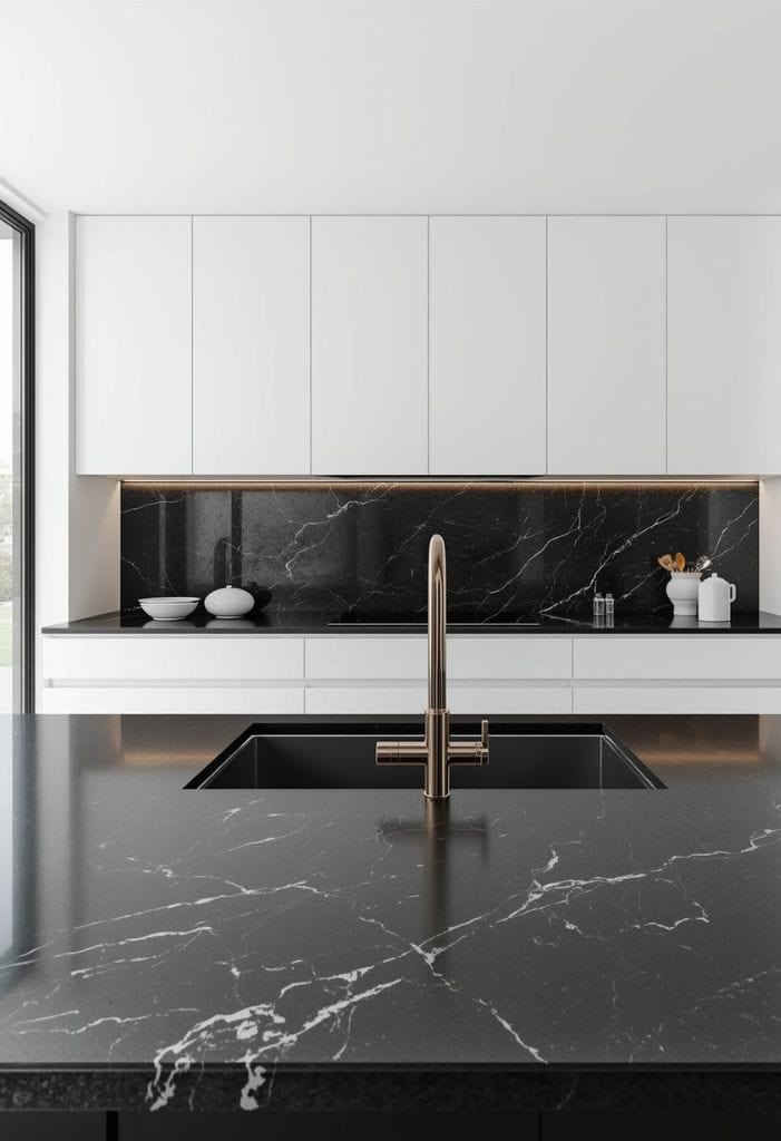 2. Black Marble Countertops with White Veins