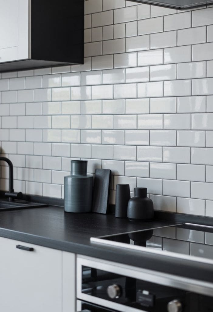 White subway tiles are a timeless choice for backsplashes. They give your kitchen a clean, bright look that plays well with both black and white accents.