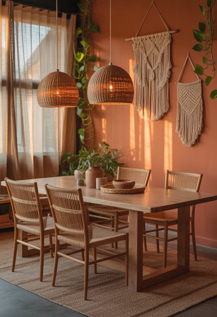 These natural elements connect your dining space to the outdoors, which is a key aspect of bohemian style.