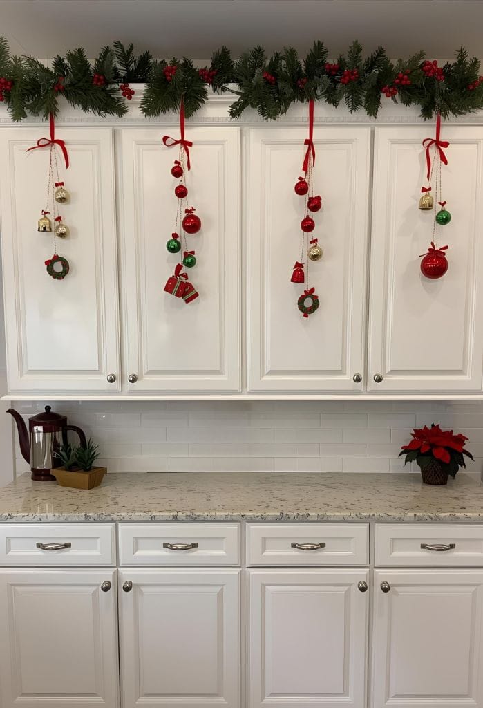 Bring some holiday cheer to an unexpected spot in your kitchen with cabinet ornaments. Pick lightweight, shatterproof balls in colors that match your decor.