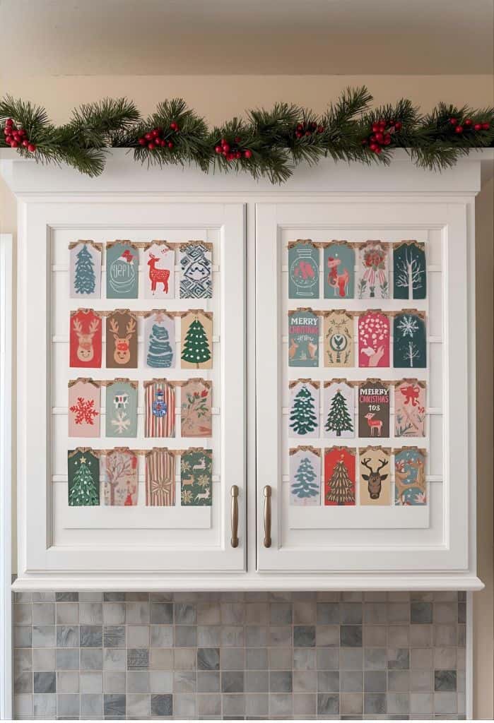 Turn your kitchen cabinets into a festive gallery with a holiday card display. You can create a cheerful focal point using the cards you receive from friends and family.