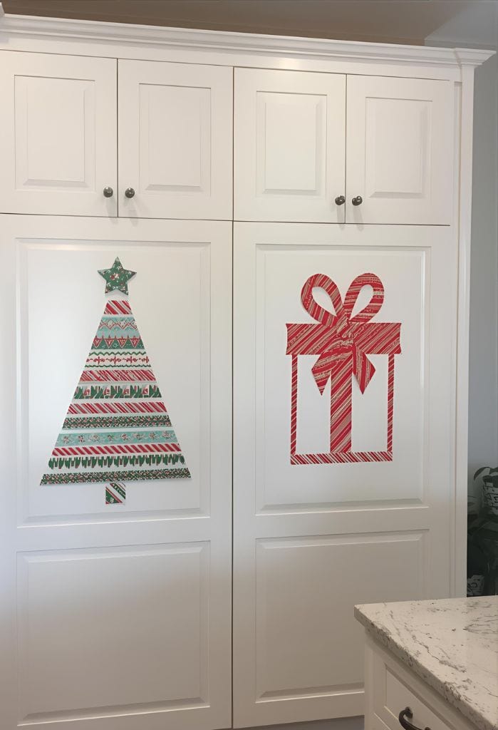 Try creating simple shapes like trees or presents on your cabinet doors. The tape is easy to remove, so you can change designs each year.