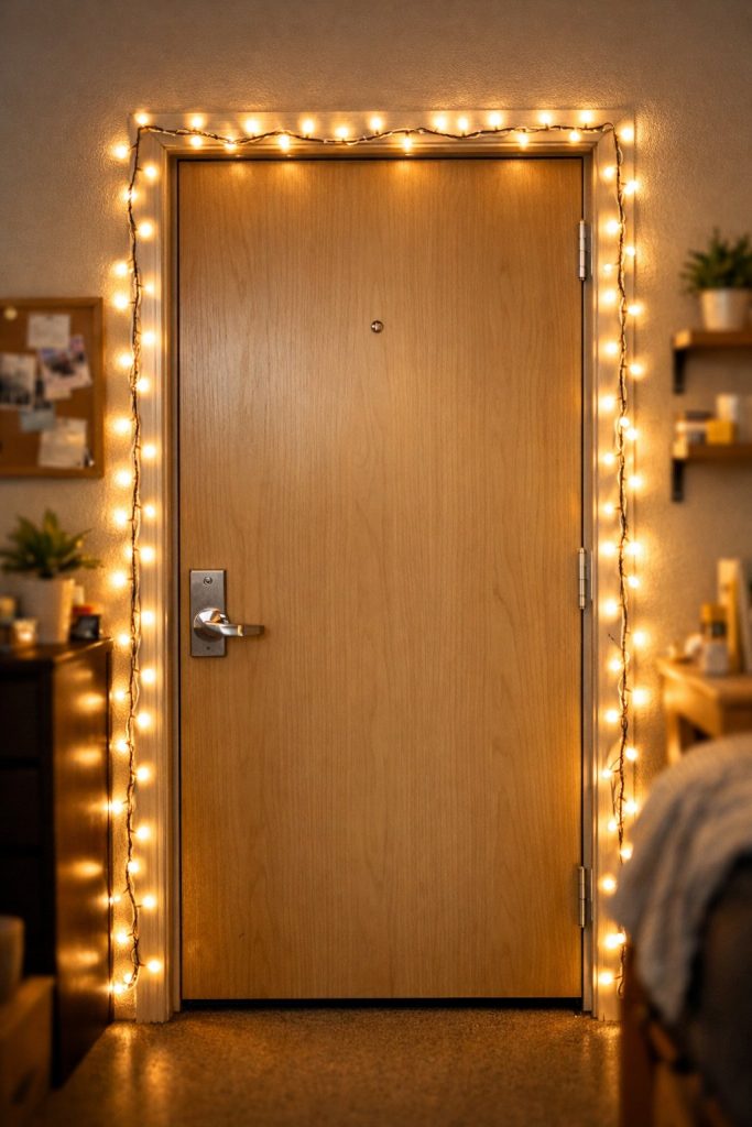 String lights make your dorm door feel warm and welcoming. Drape them around the frame or across the top.