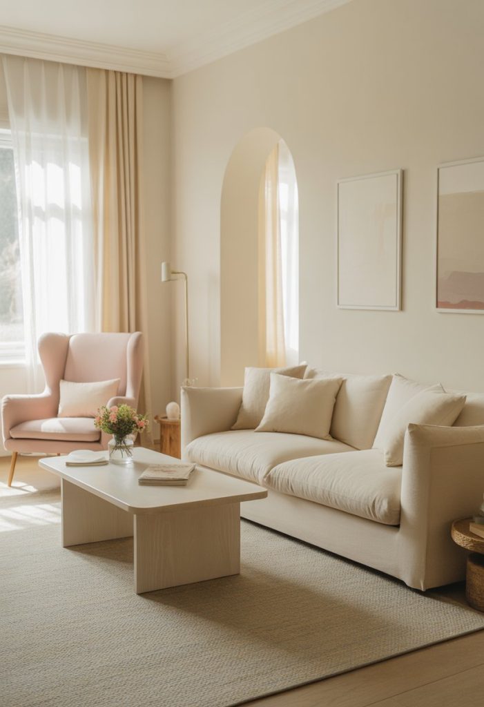 Pair cream with light blue or soft pink through pillows and curtains for a touch of subtle charm.