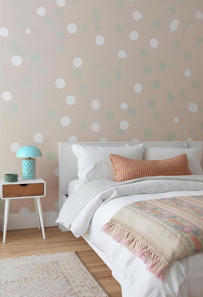 Bring a playful vibe to your walls with retro polka dots! This fun pattern can transform any room into a cheerful space.