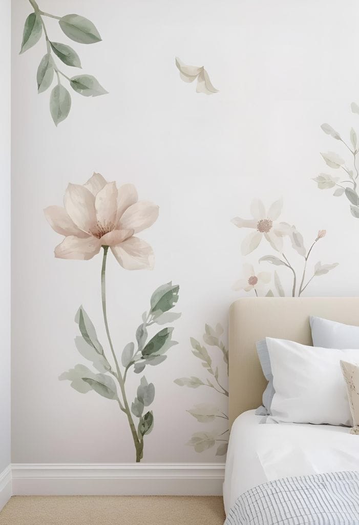Bring the garden indoors with botanical watercolor motifs on your walls. These delicate designs add a soft, natural touch to any room.