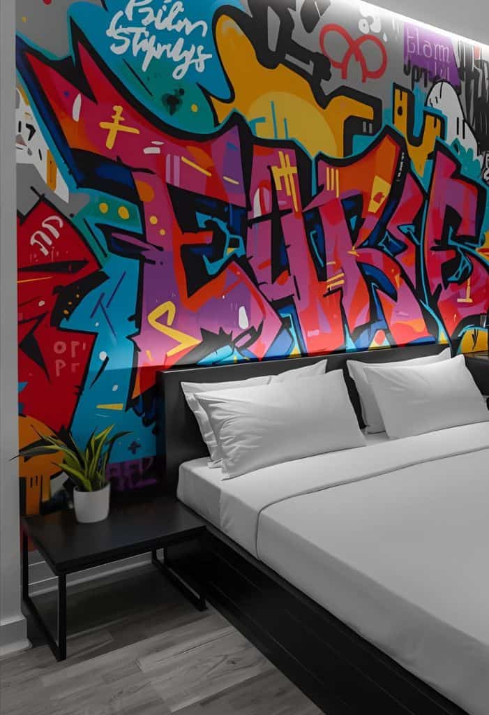You can go all out with a full wall mural or keep it subtle with smaller designs. Spray paint is the traditional tool, but you can also use brushes or stencils for more control.