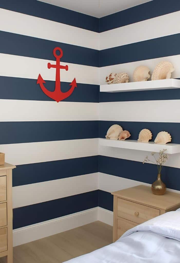 You can paint horizontal stripes across the whole room or just on one accent wall. For a fun twist, add an anchor shape in a contrasting color.