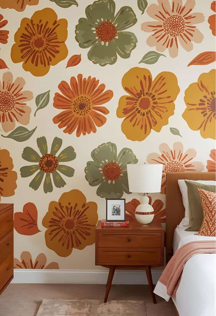 These eye-catching flowers will make your room pop and give it a fun, retro vibe. Pick a wall in your bedroom or living room and paint it with old-fashioned flower patterns.