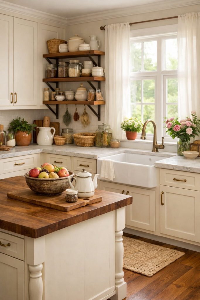 The ideas below will help you create that grandmacore kitchen that honestly just feels like a warm hug every time you walk in.
