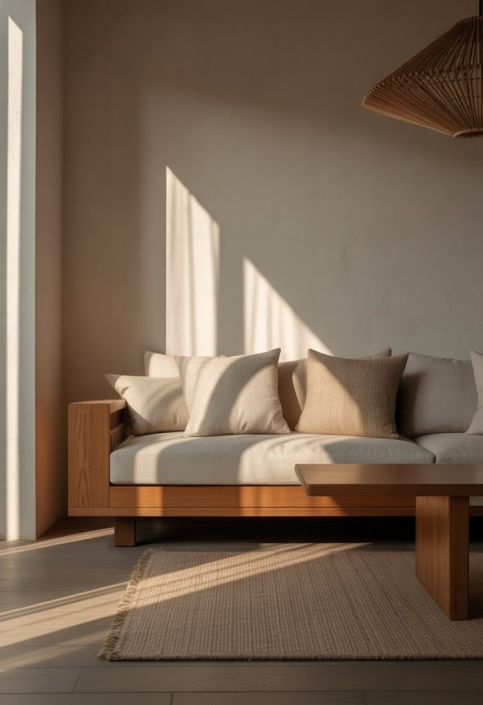 Wood furniture sits at the heart of Japandi style. Pick pieces with clean lines and natural finishes that highlight the wood’s grain.