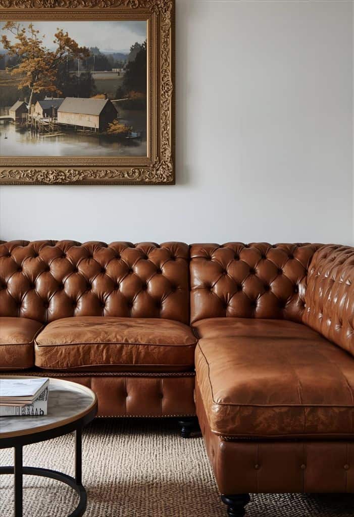 3. Tufted Leather L-Shaped Sofa for a Stylish Look