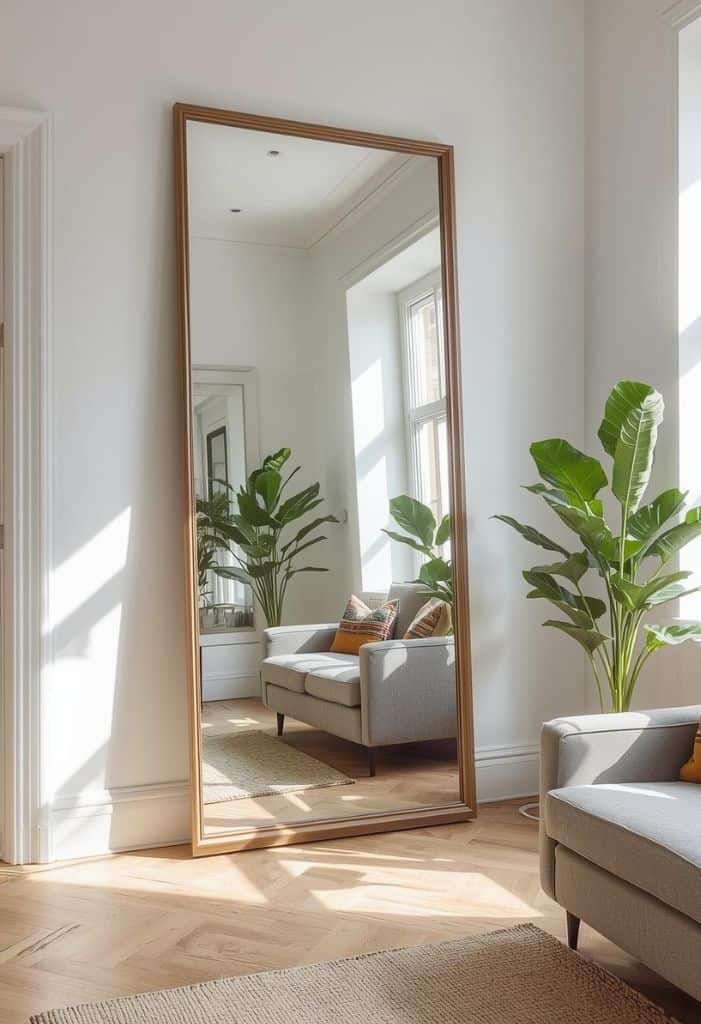 Large mirrors make your living room look bigger and bounce light around. Place one near a window to reflect natural light.