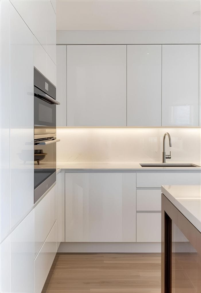 White lacquer cabinets instantly brighten up your kitchen. Their glossy finish bounces light around, making even small spaces feel open.