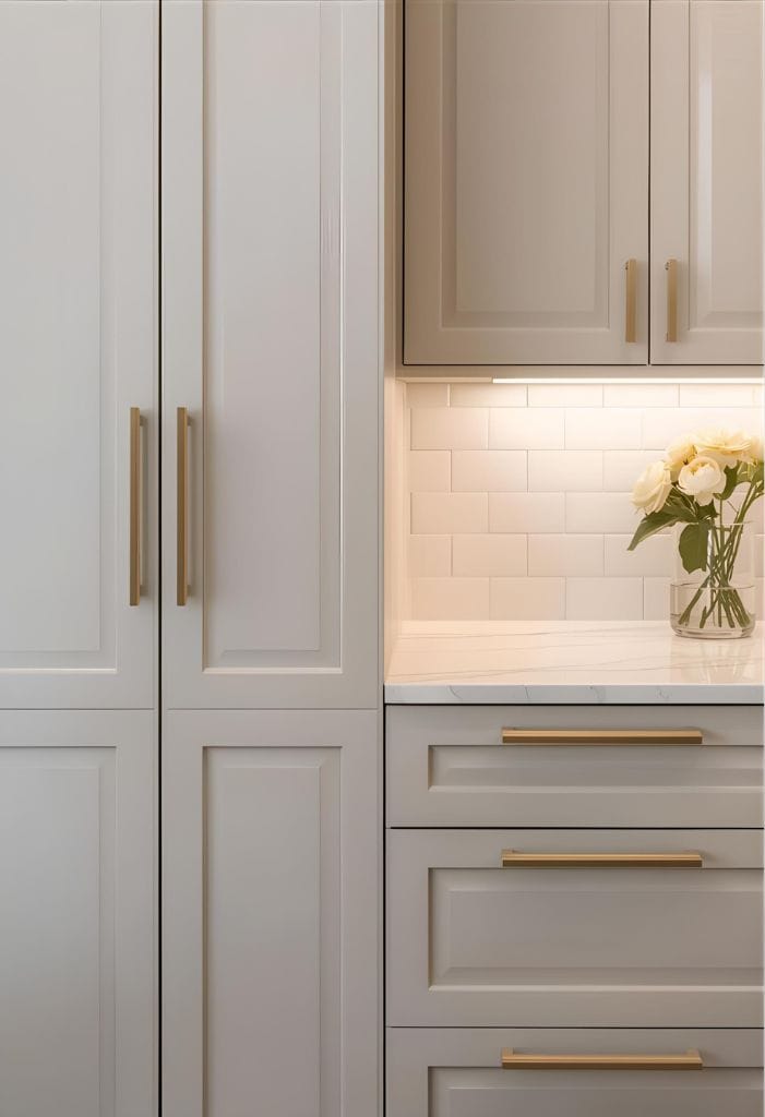 Brushed brass hardware instantly elevates your kitchen cabinets. This warm metallic finish keeps showing up in design magazines, even as trends shift.