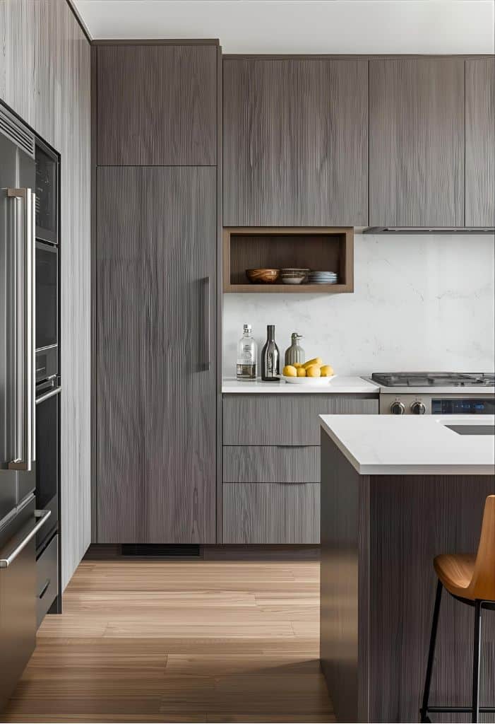 Textured Gray Oak cabinets blend oak’s natural beauty with a cool, sophisticated gray finish. The textured surface adds depth and character to your kitchen.