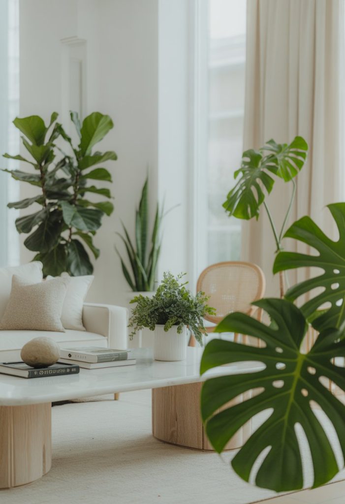 Statement plants like fiddle leaf figs or monstera add a pop of luxury to minimalist spaces. Their big, bold leaves can totally transform a room when you set them near a window.