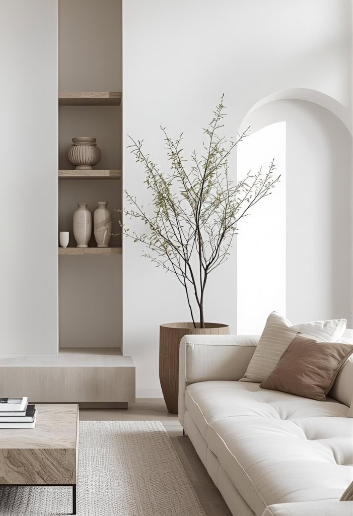A neutral color palette sets a calm, serene mood in your minimalist space. Go for soft whites, warm beiges, and gentle grays.