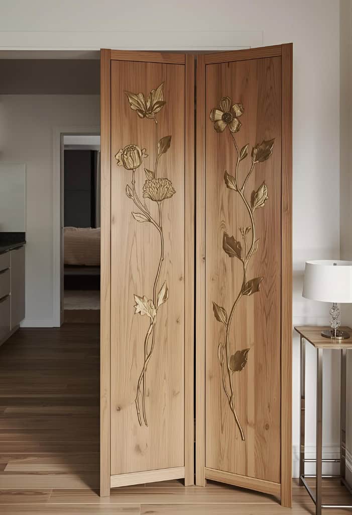 2. Handcrafted Wooden Folding Screen With Brass Accents