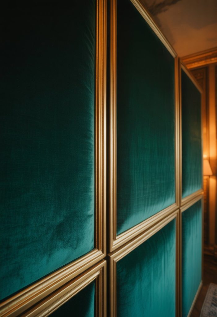 3. Velvet Upholstered Panel Divider With Gold Trim