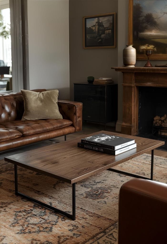 Dark wood pieces bring Victorian richness to your living room. Pair them with simple metal accents for balance.