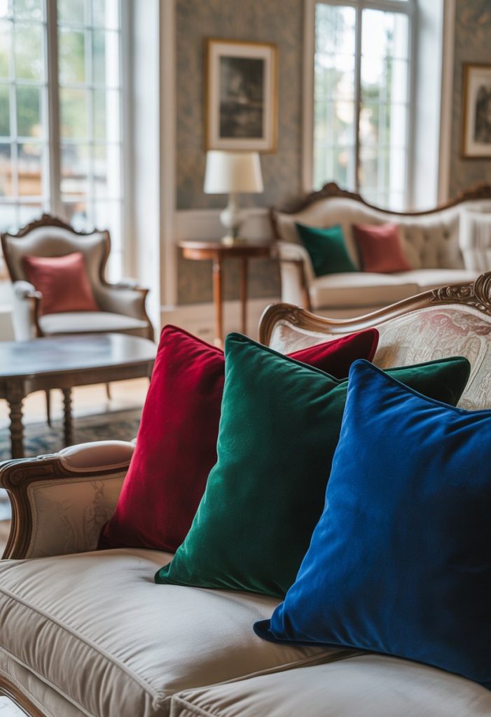 11. Velvet Throw Pillows in Bold Colors