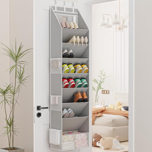 Criusia Shoe Organizer, Over the Door Shoe Organizer, Hanging Closet Shoe Storage with Large Deep Pockets, Fits 16–24 Pairs of Sneakers, Sandals, Boots, Gray