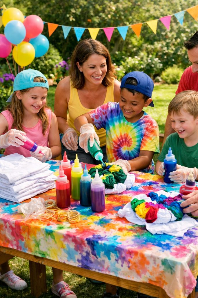 Have paper towels and aprons ready—tie-dye gets messy, but that’s half the fun.