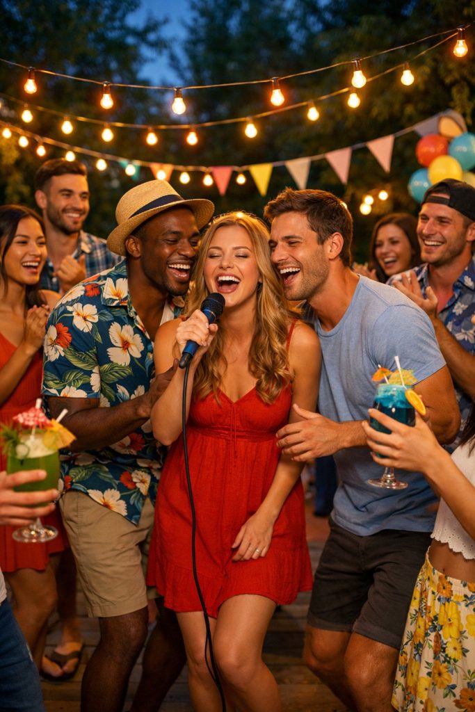 Set up a karaoke machine outside and spin a playlist full of summer hits. Pick upbeat songs to match the mood.