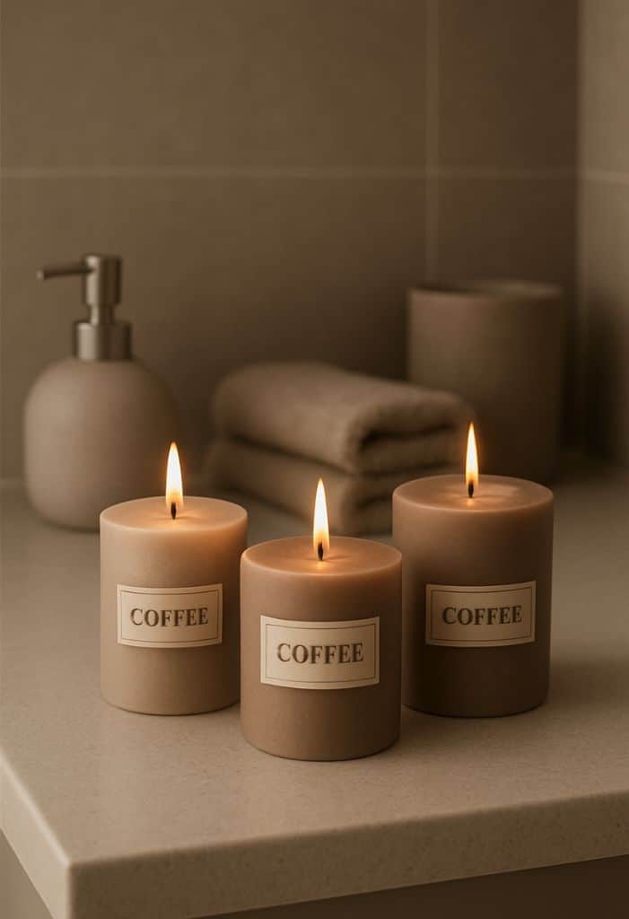 Add a touch of warmth and aroma to your taupe bathroom with scented candles in matching hues. Look for candles in soft beige, light brown, or greige shades to complement your decor.