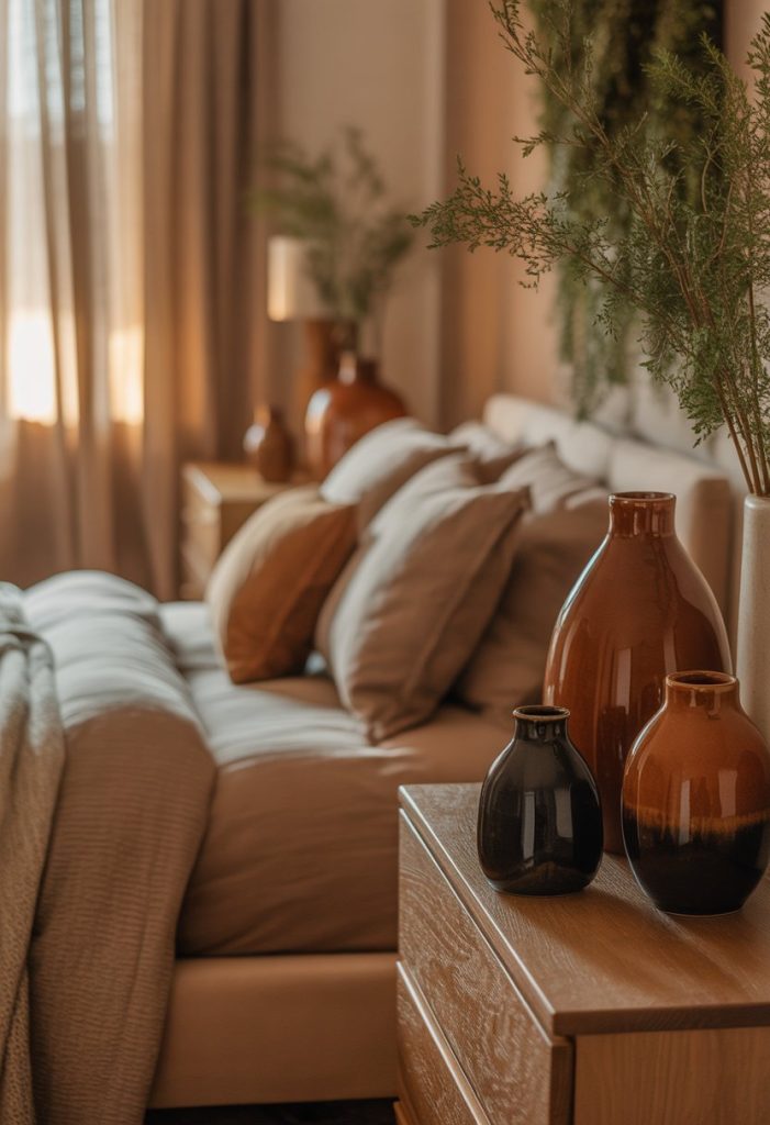 Deep brown ceramic vases bring a cozy, earthy vibe to your room. The color feels rich and grounding.