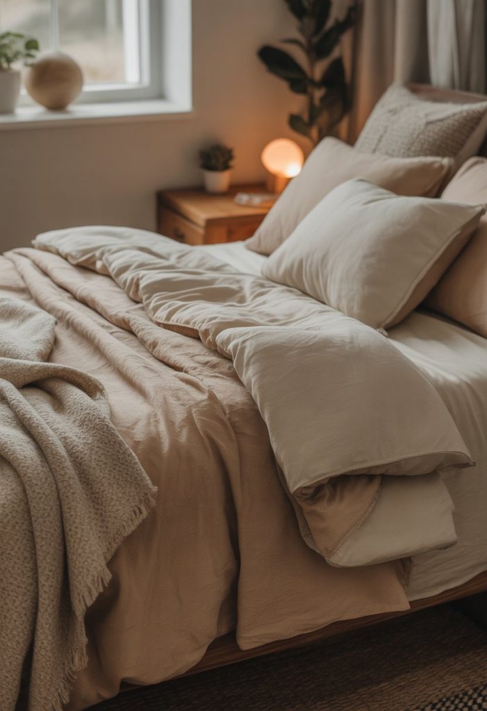 Pick natural fabrics—linen, organic cotton, maybe a little velvet. They add depth and a homey feel.