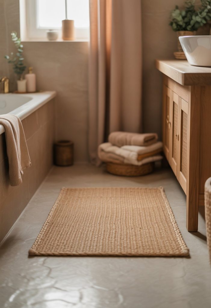 7. Jute Bath Mat to Enhance Texture and Warmth