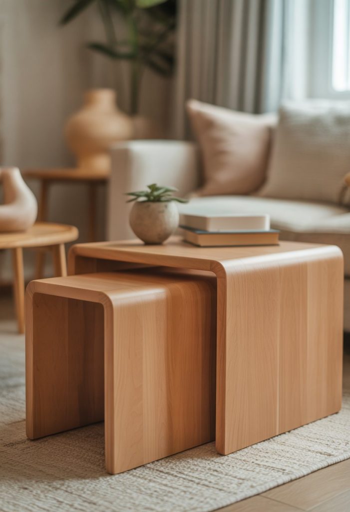 Beech wood nesting tables bring a gentle warmth to your space. Stack them together when you’re not using them.